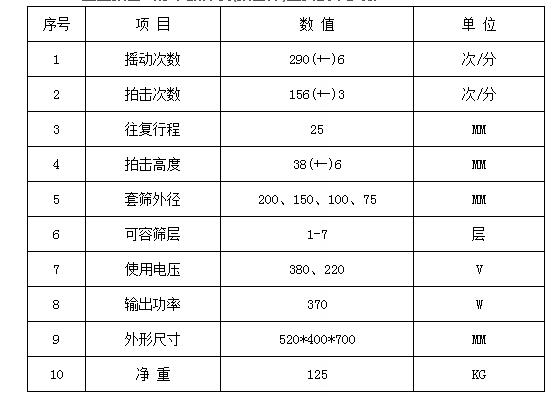 拍擊式振篩機的尺寸: