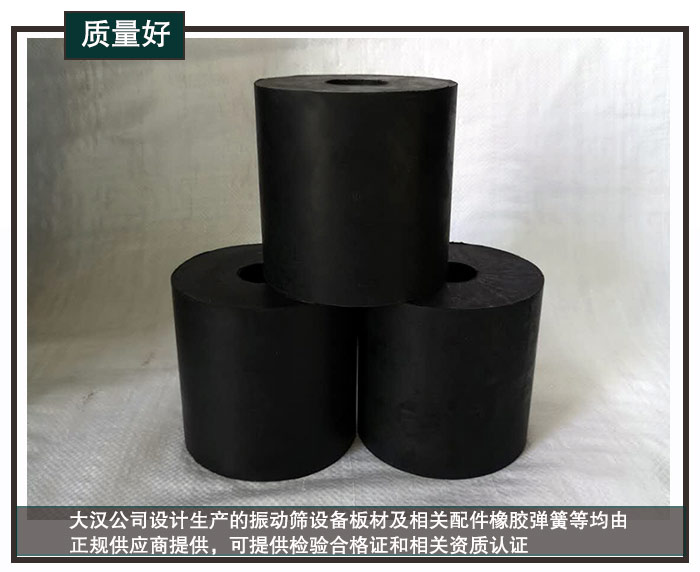 新鄉(xiāng)大漢作為一家專業(yè)的振動篩生產(chǎn)廠家,20多年積累了豐富的生產(chǎn)經(jīng)驗(yàn),專業(yè)化研發(fā)團(tuán)隊(duì)不僅對橡膠彈簧設(shè)備進(jìn)行細(xì)節(jié)改進(jìn)和完善,每個(gè)生產(chǎn)環(huán)節(jié)都做到細(xì)致化、責(zé)任化,為用戶提供優(yōu)質(zhì)橡膠彈簧。大漢公司設(shè)計(jì)生產(chǎn)的振動篩設(shè)備板材及相關(guān)配件橡膠彈簧等均由正規(guī)供應(yīng)商提供,可提供檢驗(yàn)合格證和相關(guān)資質(zhì)認(rèn)證,而且大漢的產(chǎn)品質(zhì)量通過ISO9001國際質(zhì)量體系認(rèn)證和歐盟CE認(rèn)證,用戶大可放心購買。