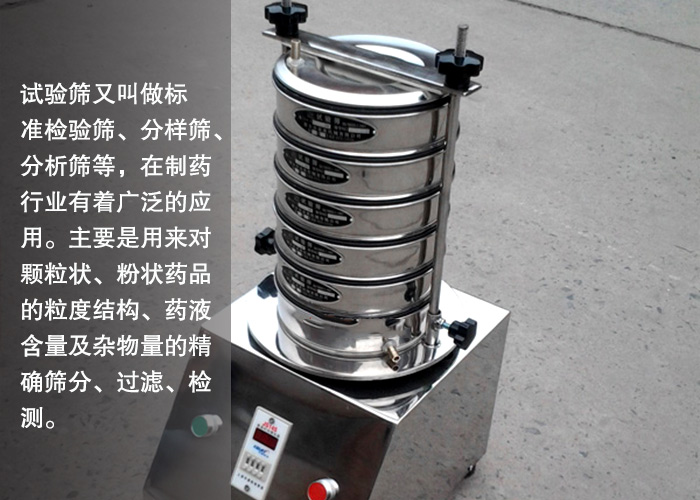 試驗篩又叫做標(biāo)準(zhǔn)檢驗篩、分樣篩、分析篩等,在制藥行業(yè)有著廣泛的應(yīng)用。主要是用來對顆粒狀、粉狀藥品的粒度結(jié)構(gòu)、藥液含量及雜物量的篩分、過濾、檢測。那么,下面主要講一下試驗篩在制藥行業(yè)中是如何應(yīng)用的?