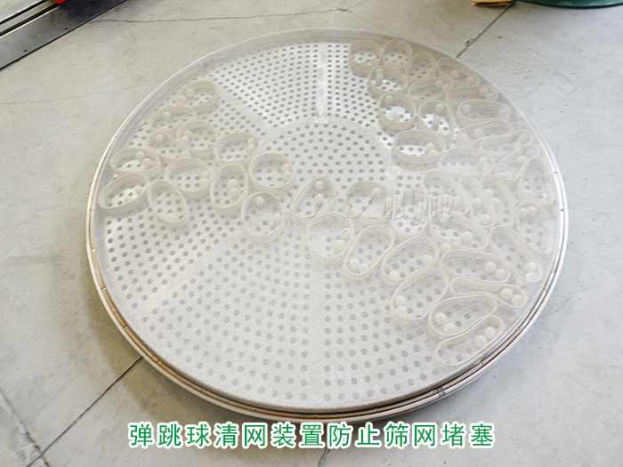普通圓形篩分設(shè)備的清網(wǎng)裝置是彈跳球清網(wǎng)裝置,在物料篩分運(yùn)行過程中不斷地拍擊篩網(wǎng),防止篩網(wǎng)遇到顆粒狀物料堵塞